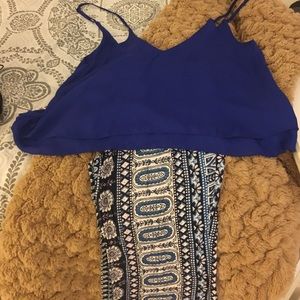 Cobalt blue tank with very low back. Size medium. 100% polyester.