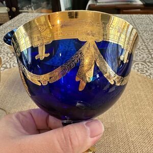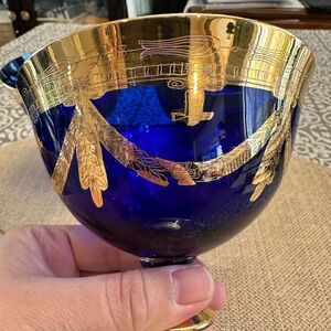 Cobalt Blue 24k Gold Trims Mouthblown MEDICI Italy Glass Compote Dessert bowl