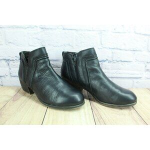 Cobb Hill Anisa Black Leather Stitched Piping V-cut Ankle Boots Size 10