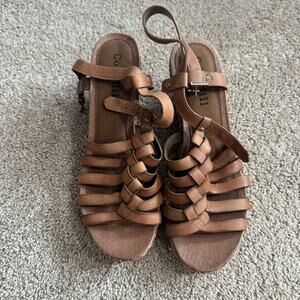 Cobb Hill Gladiator Ankle Strap Wedges Sandals Women's Size 9.5 Light Brown Cage