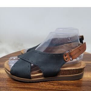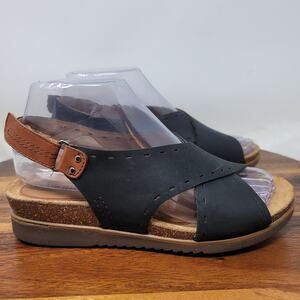 Cobb Hill May Sling Black Leather Criss Cross Sandal 6 NWT Read See Picture #5 for small marking on strap. MSRP $83 Bin 5587