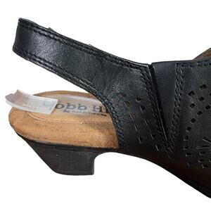 Embrace everyday comfort and style with the Cobb Hill New Balance Ainsley Women's Sandals. Designed for the modern woman, these sandals feature a sleek black leather upper with a distinctive geometric pattern that offers a chic complement to any casual or travel wardrobe. The slingback style ensures a secure fit, while the mid-height block heel provides a comfortable lift suitable for all-day wear. Crafted with attention to detail, the sandals include a cushioned foam insole and a soft leather lining to cradle your feet in luxury. The durable rubber outsole offers reliable traction, making these sandals an ideal choice for the busy individual on the move. With their versatile design, they are perfect for transitioning through spring, summer, and fall.