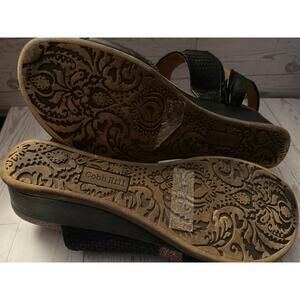 Cobb Hill by Rockport Black Leather Wedge Sandal Size 9 Comfort Adjustable Strap