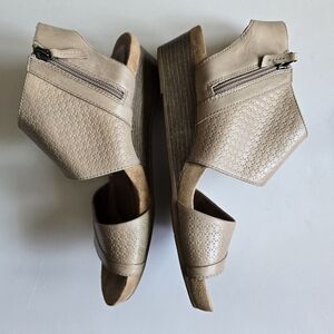 Cobb Hill by Rockport Hollywood 2 Piece Cuff Open Toe Wedge Sandals Khaki Sz 10