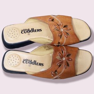 Cobbie Cuddlers Womens Brown Leather Fairy Slides Flowers Wedges Sandals 9.5
