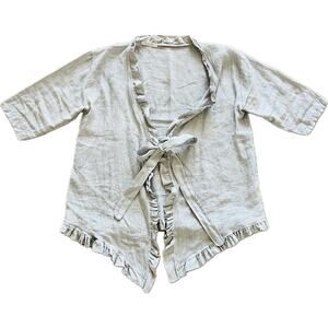 CobbleStone 100% Linen Women's Jacket Gray Neutral Tie Front Ruffle Collar OS