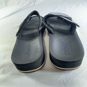 Stylish black sandals with dual straps. Comfortable and versatile design.