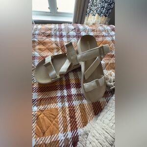 Elegant cream sandals with soft straps. Perfect for casual wear.