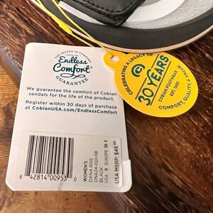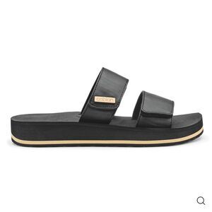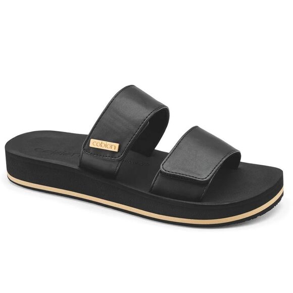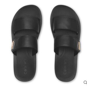Cobian Women's Dana Rise Synthetic Leather Strap Slides Sandals in Black. Size 8. New in manufacturer’s packaging. New with tags.
