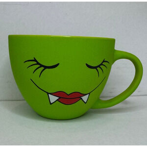 Cobwebs & Cauldrons Green Vampire Face Mug Halloween Cup Fangs Lips Ceramic 4.5”