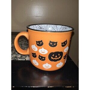 Cobwebs & Cauldrons Mug Halloween PUMPKINS BLACK CATS 21oz Coffee Tea Cocoa cup