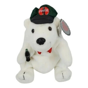 Coca Cola 90s Vintage Collectible White Polar Bear with Green Cap Plush 58