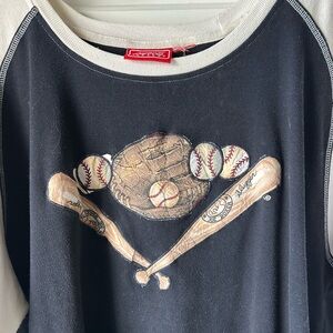 90s Vintage baseball tee by Coca-Cola. Features a baseball graphic on a classic raglan sleeve tee. Rib neckband with baseball screen print on front. Perfect for the sports/vintage look. Boxy oversized, cropped look. Minor stains in photos!