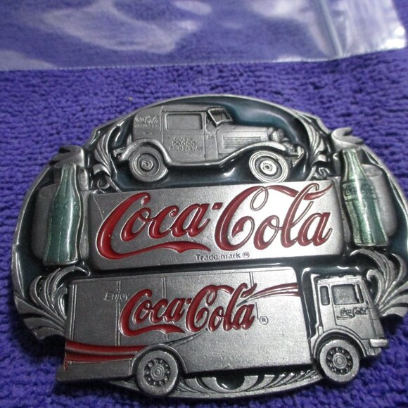 Coca Cola Belt Buckle with Delivery Trucks over the years.