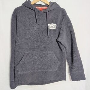 Coca Cola Black Sherpa Hoodie B/W Logo Sz L
