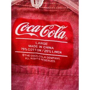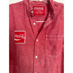 Coca- Cola Button Up Shirt Size Large Short Sleeve Red Pocket Men's Employee