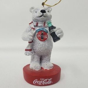 Coca Cola Christmas Tree Ornaments Lot Of 2 Polar Bear Man Child Collectible