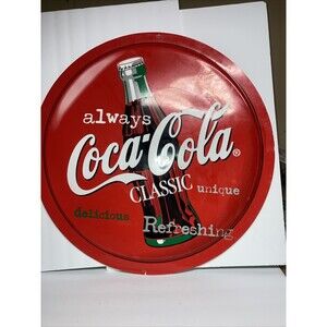 Coca Cola Classic Round Sign Plastic Double Sided Approx 27"
