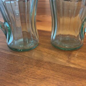 Coca Cola Coke Set of Heavy Green Glasses Handle 12 ounce Made in USA By Libby