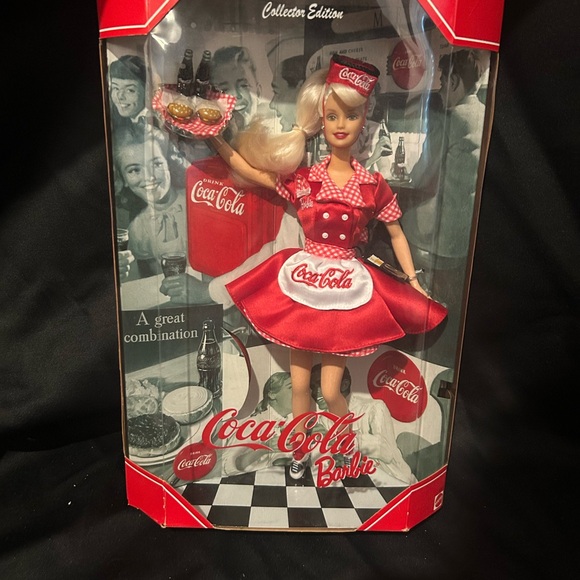 Coca Cola themed doll. Dressed in red and white outfit. Includes accessories.