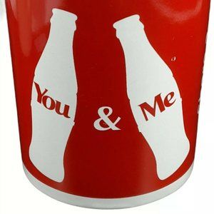 Coca Cola "Share a Coke-You and Me" red and white cup mug with Coke bottle silhouettes and the iconic Coke logo