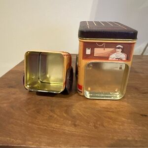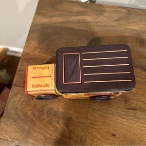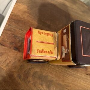 Great preowned condition. Some flaws to printing on tin due to age and on wheels from being rolled. Tin is in overall great condition without dents or flaws to shape. See photos for full details.