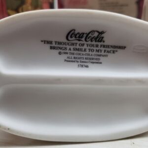 Enesco porcelain figurine #578746 "The Thought of Your Friendship Brings a Smile to My Face". Comes with box and certificate but box has a cut in it as seen in the photos.
