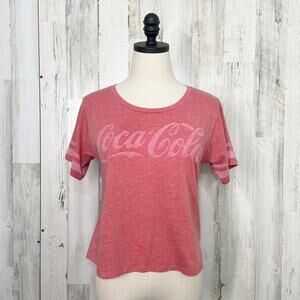 Coca Cola Football Crop Graphic Tee Red Spell Out Casual Athleisure Size S