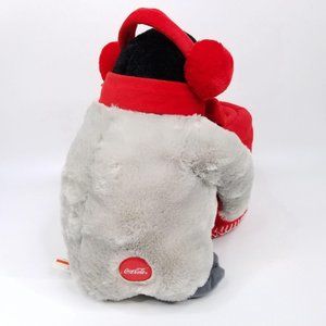 Coca Cola Gray Penguin Plush Stuffed Animal 14" Earmuffs Scarf Red Throw 2012
