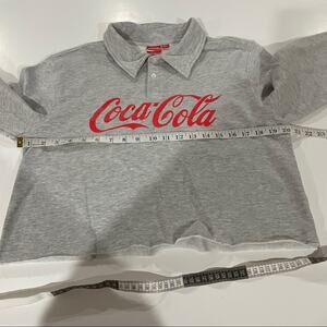 Coca Cola Gray & Red Long Sleeve Raw Hem Cropped Pullover Sweater Size M