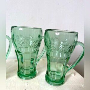 Enjoy your favorite beverages with this set of Coca Cola green glass mugs. Perfect for any dining occasion.