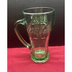 Coca Cola Green Glass Mug With Handle Classic Coke Heavy 14 Ounce