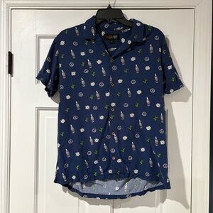Keywords: Mens Aloha Shirt, Tropical Print, Summer Wear, Button Up, Short Sleeve, Beverage Theme, Graphic Tee, Vacation Shirt, Resort Wear, Casual Top, Bold Pattern