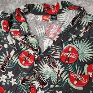 Coca Cola Hawaiian Shirt Mens XXL Black Floral Tropical Coca Cola Bottles Aloha