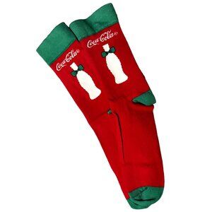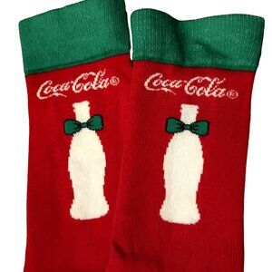 Coca Cola Holiday Crew Socks Christmas Coke Bottle with Ribbon Green Red RARE