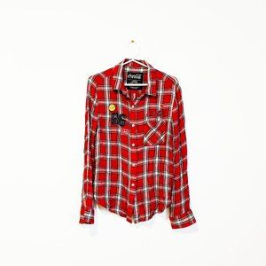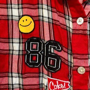 Coca Cola Long Sleeve Plaid red black Button down shirt