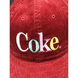 Coca Cola Men Hat OS Red Corduroy Spellout Embroidered Strapback Cap