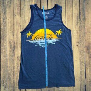 Coca Cola Navy Blue Yellow Sun Palm Trees Tropical Tank Top Men's Size Small