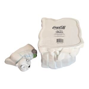 Vintage Coca Cola POLAR BEAR COOKIE JAR Work Of Art Gibson 2000 Coke Bottle Canister Lid -NEW Condition!