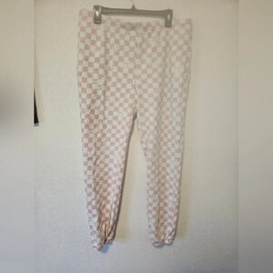Coca Cola Pink and White Checkered Used Sweat Pants Women's Size Large.