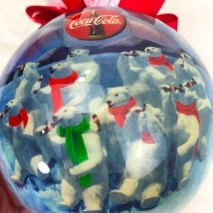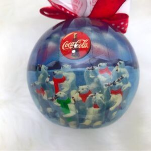 Coca Cola Polar Bears 1995 Vintage Christmas Collectible Ornament with Bow