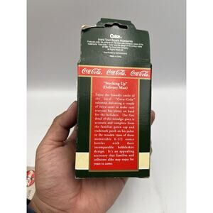 The product is a Coca-Cola Town Square figurine from 1992 featuring a delivery man stocking up supplies. It is part of the Christmas collectibles series and portrays a festive scene related to the popular soda brand. The figurine is multi-color and captures the essence of the holiday season with a nostalgic Coca-Cola theme. Perfect for collectors of Coca-Cola memorabilia or those interested in vintage advertising pieces, this figurine adds a touch of charm to any collection or holiday display.
