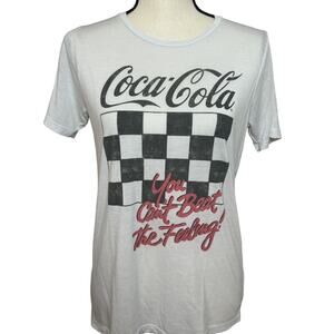Coca Cola “you cant beat the feeling” checkered white short sleeve tee.
