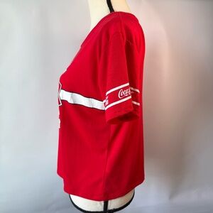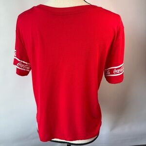 Coca Cola Women's Red Graphic Tee size large boxy fit polyester rayon blend