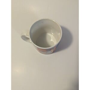 This pre-owned mug has a small amount of staining around the rim. There aren't any cracks or nicks. The bottom is a bit scuffed from use. The interior of the mug does not have any staining or other damage.