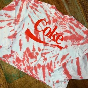 Women’s Juniors COKE long sleeve t-shirt. Coca Cola. Size XL. Tie dye-pinkish color with red