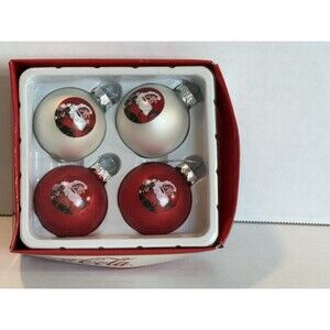 Coca-Cola 4 Glass Ball Holiday Ornaments In A Box Collectors Item White & Red
