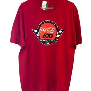 Brand new Coca-Cola 600 NASCAR t-shirt, size XL. Red shirt with the Coca-Cola 600 Charlotte, USA logo on the front. No graphics on the back. Made from a soft blend (50% cotton, 25% polyester, 25% rayon). Official NASCAR merchandise. Never worn, still has the tags attached. Great for race fans or collectors.