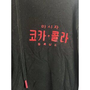 Coca-Cola Black Hoodie Korean Text Design Hooded Drawstring M Grunge Streetwear