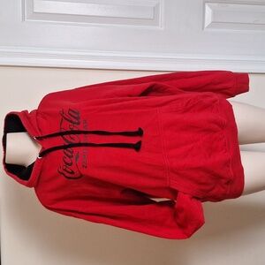 Coca-Cola Casual Sweatshirt Fleece Lined Cotton Red Hoodie Men Large